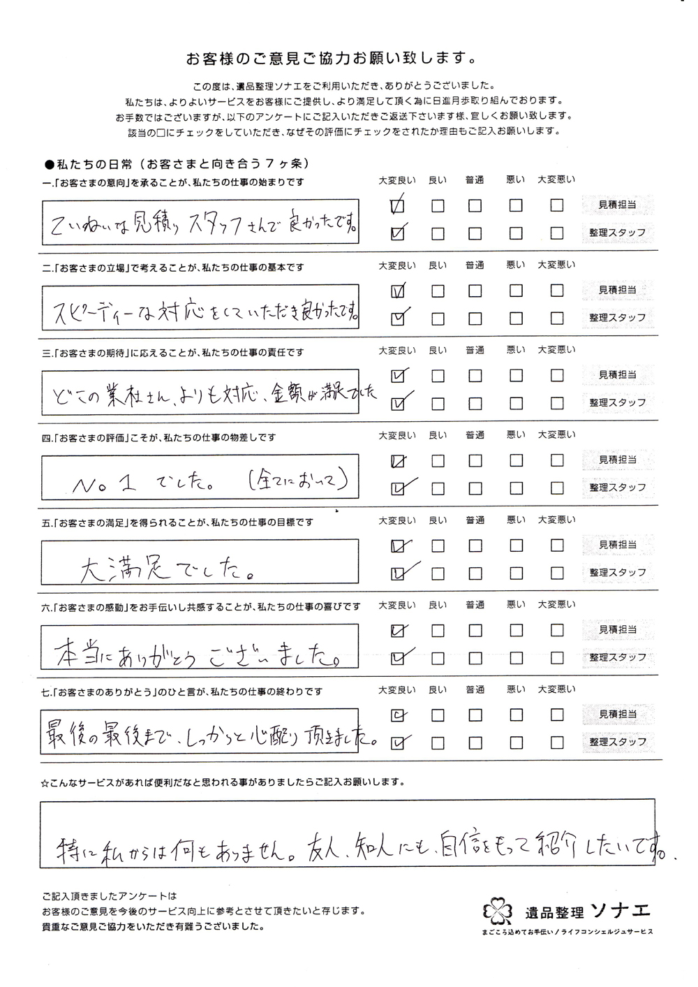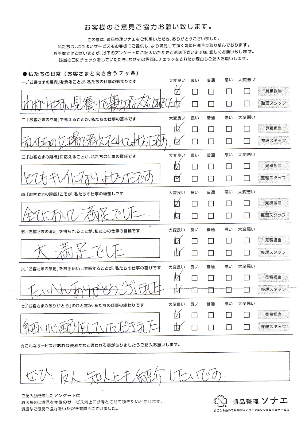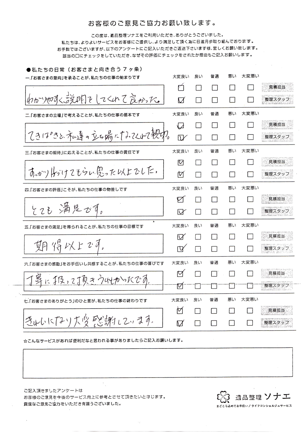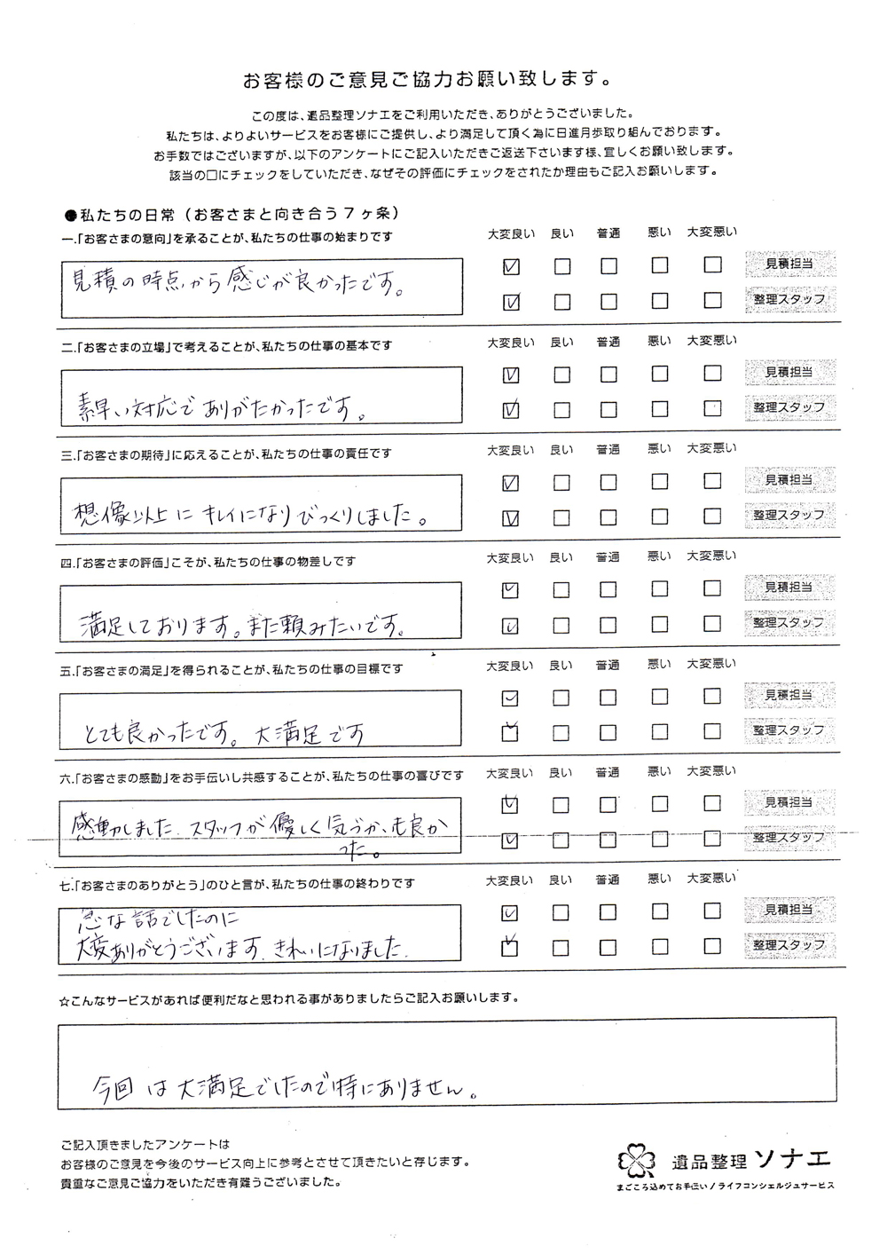 遺品整理ソナエでは迅速・丁寧・真心をモットーに年間施工件数500 件を超える遺品整理等 数多くのノウハウと経験があります。